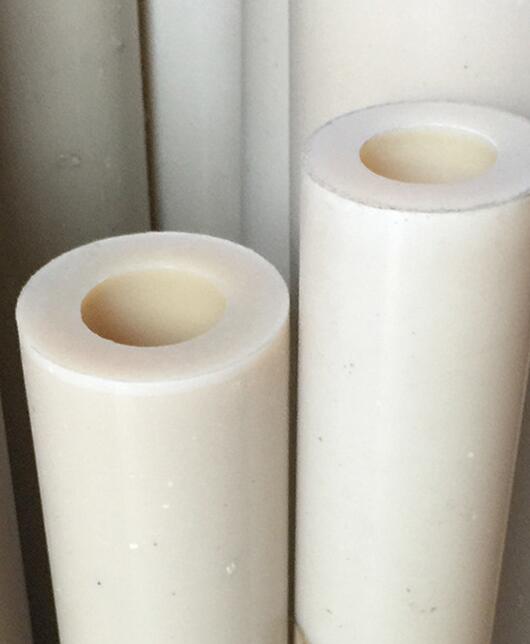 增強MC尼龍管的內壁表面光滑,其光潔度甚至比拋光的不銹鋼還光滑。因此在飽和溶液輸送中,管道內壁很難作為結晶的析出點,減少在管道內壁的結晶過程,可有效地降低管道結疤具有良好的防止或延緩結疤的能力。因為在化工生產中,結晶過程會在管道粗糙的表面上首先析出,嚴重時會導致管道阻力升高,使普通的管道功能喪失。純堿行業的氨鹽水輸送就是最典型的示例。氨鹽水在輸送過程中隨著溫度的降低,NaCl等復鹽在管壁上析出結晶體,但不會在尼龍管中形成結疤。